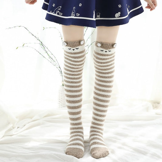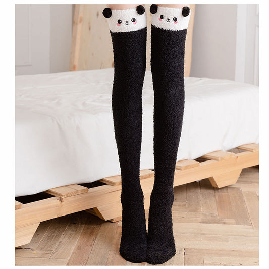 -15%Cartoon Embroidered Fuzzy Over Knee High Socks
