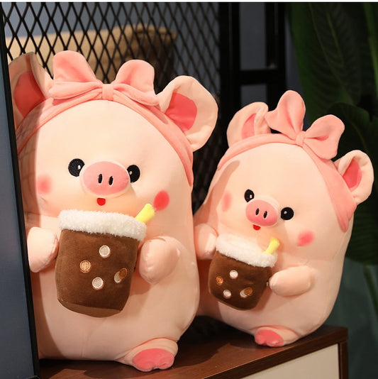 -60%Cute Bubble Tea Pink Pig Plush Toys