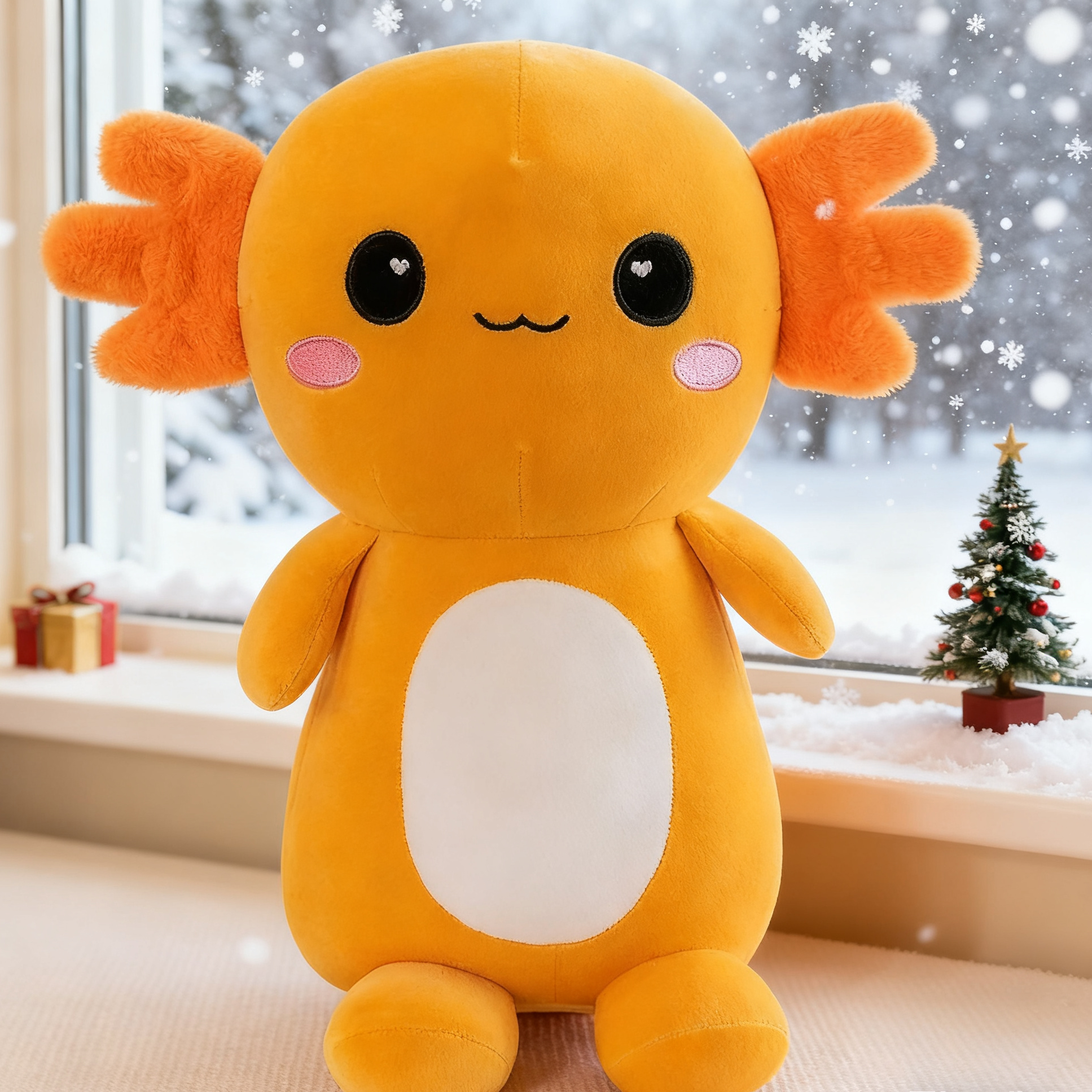 Our axolotl plush is a cute axolotl toy made for everyday hugs. This kawaii plushie features soft colors, fluffy gill frills, and an adorable rounded design, so it looks great on a bed or gaming setup. Choose from four sizes and pink, blue, orange, or green. Crafted as a kid-friendly plush and a super soft stuffed animal, this animal plush toy is gentle on skin and perfect for snuggles.