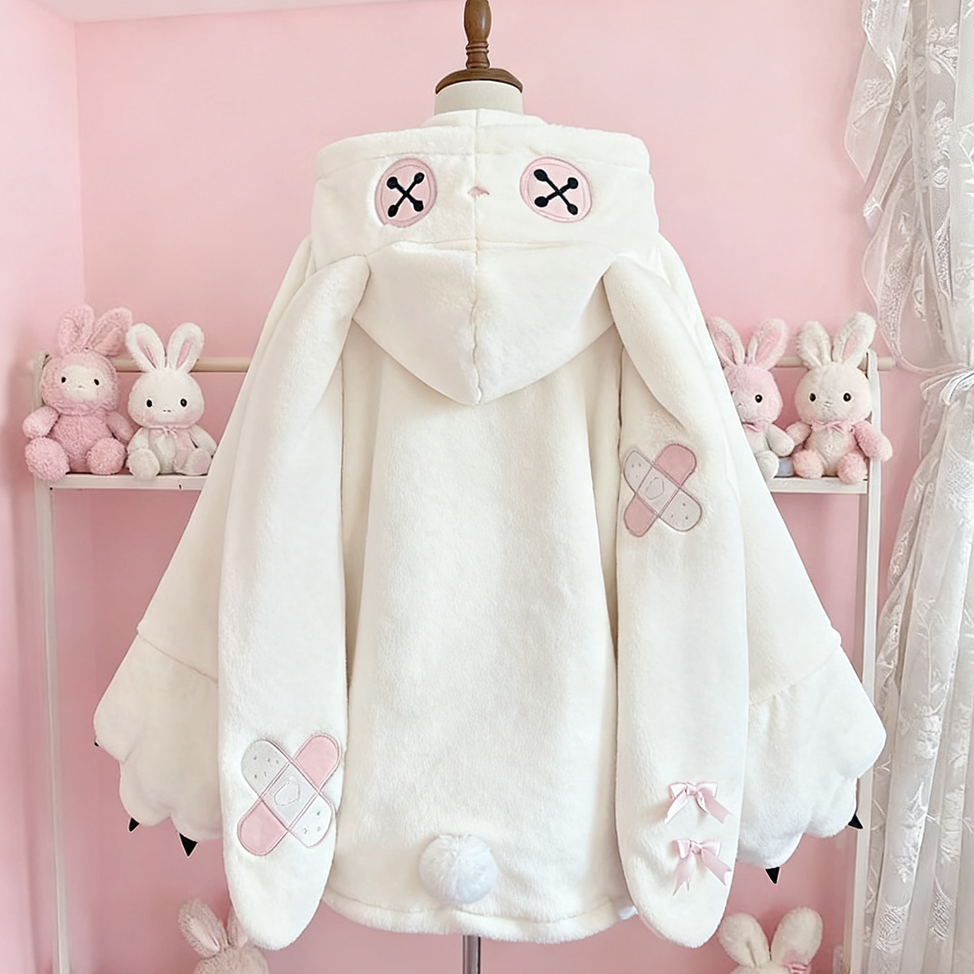 Bunny Hoodie With Bunny Ears Kawaii Plush Zip Up Coat