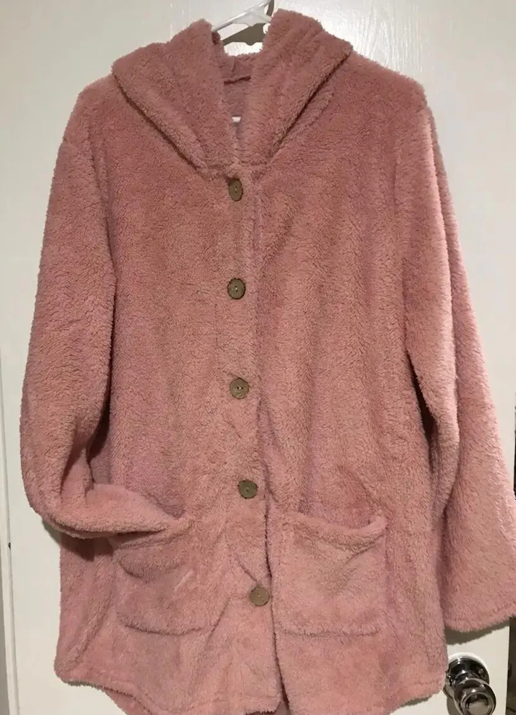 I bought this to use around the house for when I am cold. It is very warm and fluffy. My only complaint is they stitched the pockets shut in the middle so that you couldn’t get your hands inside of them. I had to cut them open, which was a challenge.
